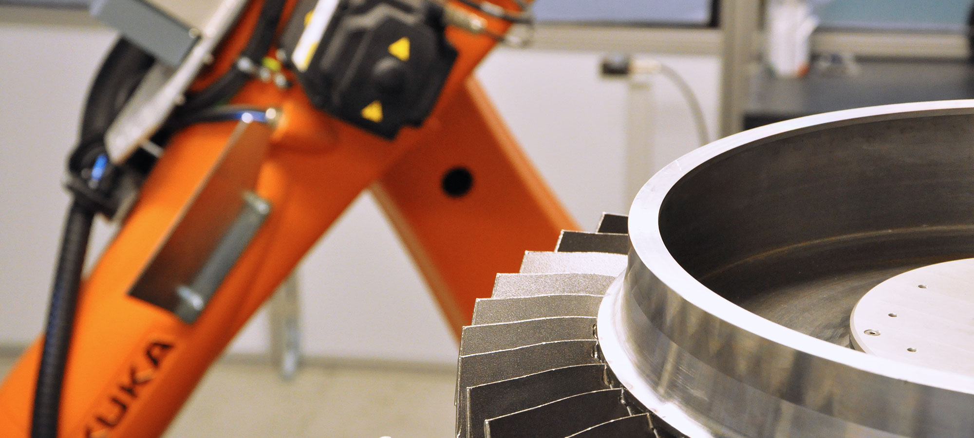 GEBE2 has designed a robotic cell to deburr a 2-metre diameter titanium housing, a critical part for LEAP engines used in the aerospace industry. This large housing requires precision and rigorous tolerances because of its role in the engine’s structure.